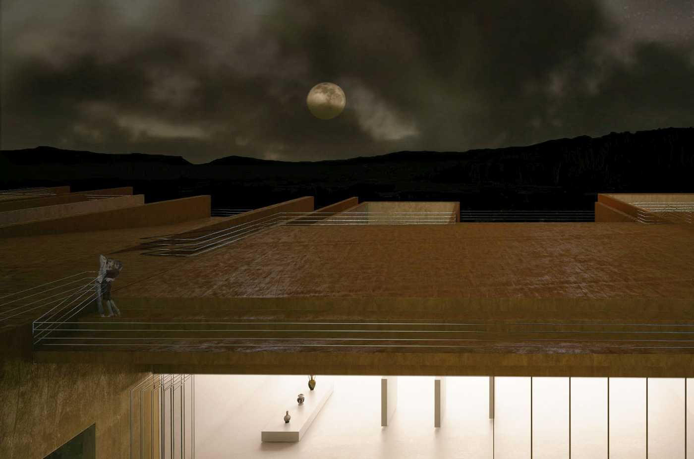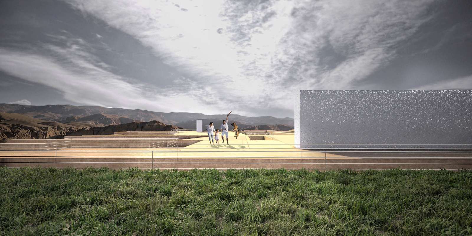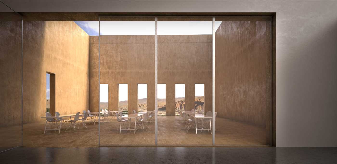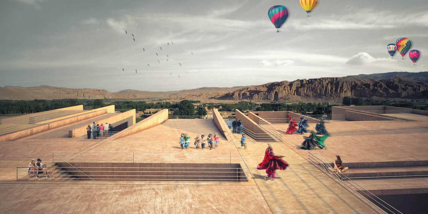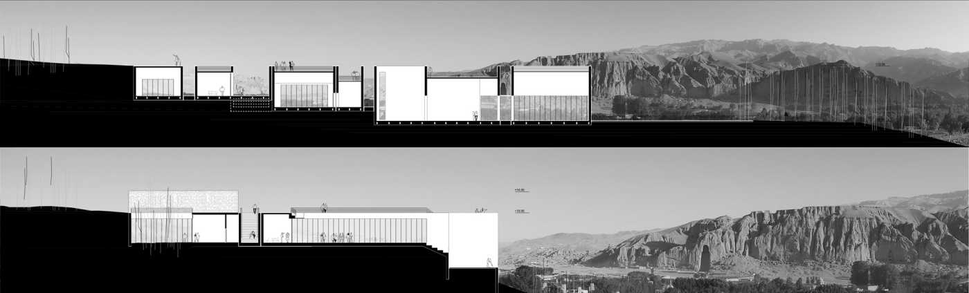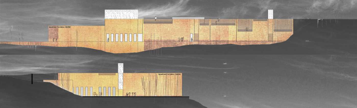 CONCEPT | The Bamiyan Cultural Centre is conceived as a settlement of traditional courtyard houses in Afghanistan that together represent the unification of all the diverse cultures in Bamiyan Valley and broader. The building is positioned in the middle area of the site, on its south and west sides embraced by the hill, and on north and west directly opening towards the Buddha Cliffs in the distance. It seems to be excavated from the surrounding terrain, the Bamiyan Cultural Centre rises from the fertile soil so important for the lives of the people in Bemoan. Born from the soil, and facing the open sky, it will house, cultivate and nourish the past and future Bamiyan culture.