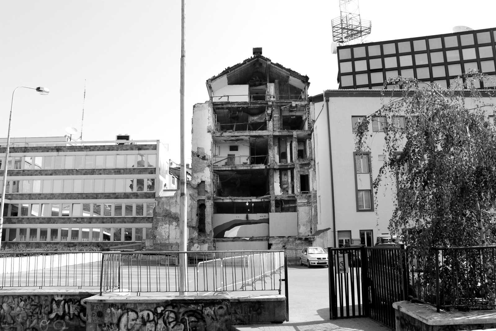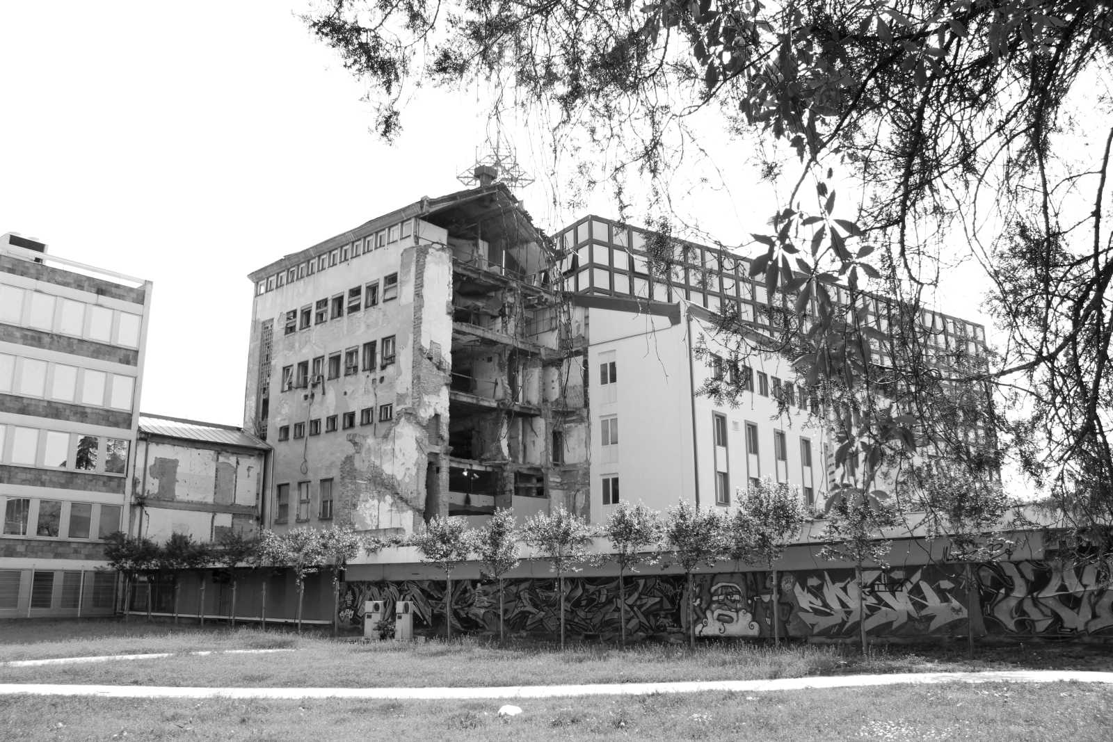 KONCEPT | Idejno arhitektonsko rešenje Spomen obeležja stradanju radnika Radio-televizije Srbije tokom NATO bombardovanja 1999. godine ima za cilj da postojeci objekat u ruševinama i plato ispred njega uz minimalne intervencije programski i prostorno transformiše u javni prostor namenjen gradu koji ce trajno cuvati secanje na tragicni dogadaj i njegove žrtve. Težeci da svojom pojavom pomiri dva nespojiva trenutka u vremenu, on u projektantskom smislu poprima dvojnu ulogu. Jedna soba objekta je zamrznuta u trenutku u kojem je nestala i posvecena je ljudima koji su tada izgubili život, a ostatak zgrade je namenjen javnosti, kao podsetnik i javni istorijski dokument tog stradanja. Ona je deo sadašnjeg trenutka, reflektuje nebo, zelenilo, život.