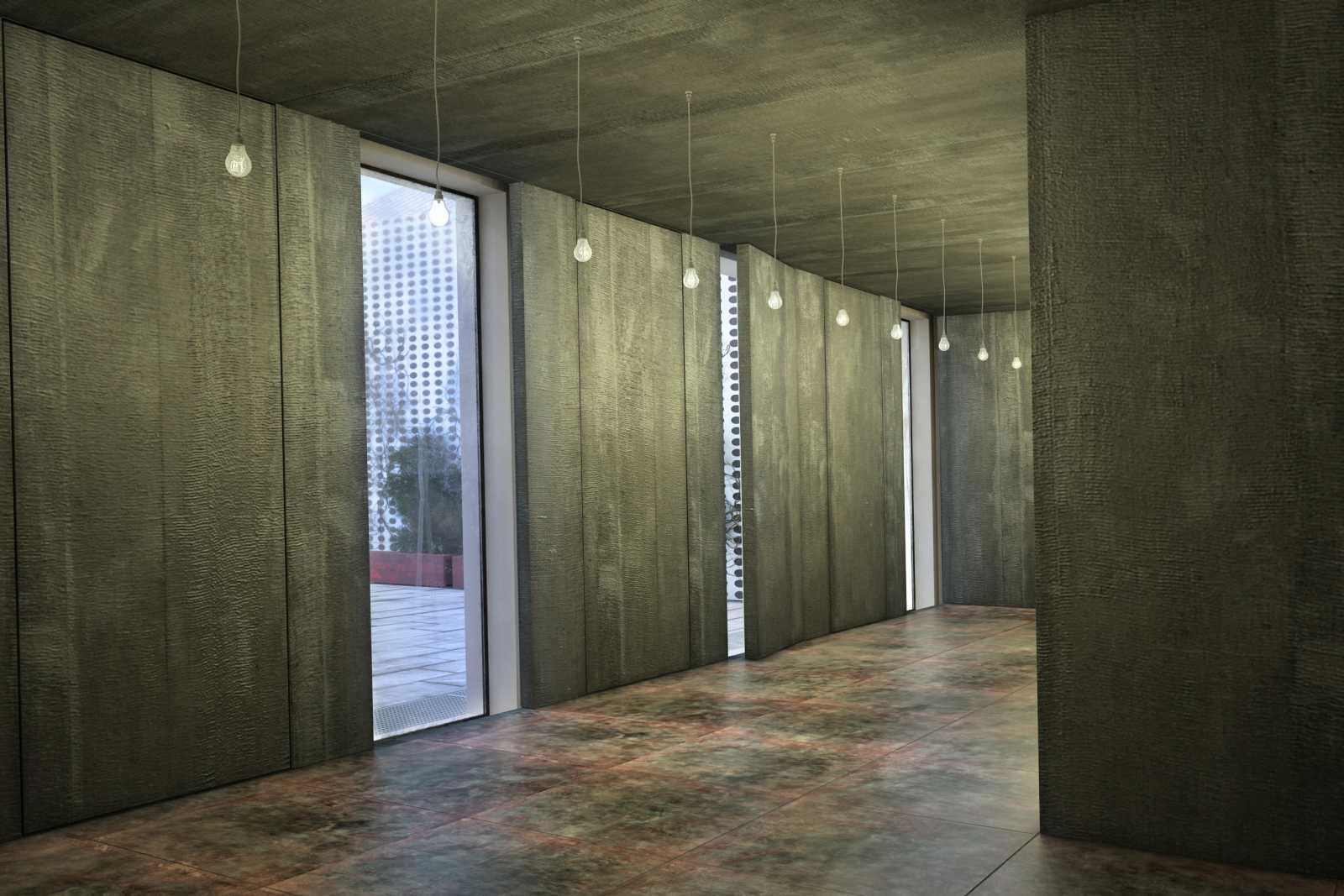 MATERIJALIZACIJA | Idejno-arhitektonsko rešenje memorijala podrazumeva upotrebu prirodnih i lako dostupnih materijala. Zidovi, tavanice i krovna konstrukcija ruševine su predvideni da se ociste, i dozidaju novom kvalitetnom fasadnom ciglom do granice predvidene projektom. Nijansa nove cigle bira se tako da se ruševina jasno naglasi u odnosu na ostatak memorijala. Bezbojnim silikonskim premazima zidovi su u celini zašticeni od daljeg propadanja. Reflektujuci paneli postavljeni na višim etažama objekta imaju ulogu i zaštite od pregrevanja južne strane objekta i prostorija iza memorijala koje koristi Radio-televizija Srbije. Zatvoreni prostor umetnut u ruševinu je od montažne drvene podkonstrukcije, obložen drvenim panelima i pažljivo distancerima odvojen od samih zidova ruševine. Zatim je predvideno da se u celini (i spolja i iznutra) obloži tankim mrežastim tekstilom - gazom i premazan pastom na bazi crne vodootporne fasadne boje i sitnih zrnaca peska (po ugledu na materijal primenjen na objektu Serpentin paviljona u Londonu 2011. godine arhitekte Pitera Cumtora). Na ovaj nacin postiže se disperzija svetlosti na samoj površini materijala na razlicite strane i konstantno menjanje efekta koji ona proizvodi promenom osvetljenja u toku dana i noci. Zrnasta tekstura materijala takode ima za cilj, kao i sama ruševina da privuce posetioca da je dodirne i oseti. Predvideno je poplocavanje glavnog platoa lakoarmiranim betonskim plocama, osim mesta na kojem je nekada bila zgrada, koje bi bilo od uglacanog - blago reflektujuceg sloja betona sa urezanim imenima žrtava. Površina otvorenog prostora spomen-obeležja podeljena je po zonama - poplocane zone, zone proredenog poplocanja i travanate površine. Poplocanje je predvideno da se postavlja u 4 pravca u odnosu na pristupe memorijalu sa razlicitih strana. Delovi u padu prekriveni travnatom površinom oblažu se geotekstilom pre nanošenja humusa i sejanja trave, kako bi se sprecilo klizanje zemlje. Ograda postavljena na rampu koja vodi na krov stare ambulante je staklena, u skladu sa ogradom arhitekte Ivana Antica na objektu Decijeg kulturnog centra. Zid nekadašnjeg objekta ''Stare ambulante'' prekriven je metalnom mrežom i namenjen ozelenjavanju.