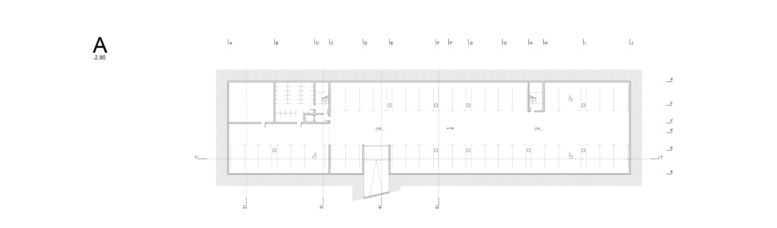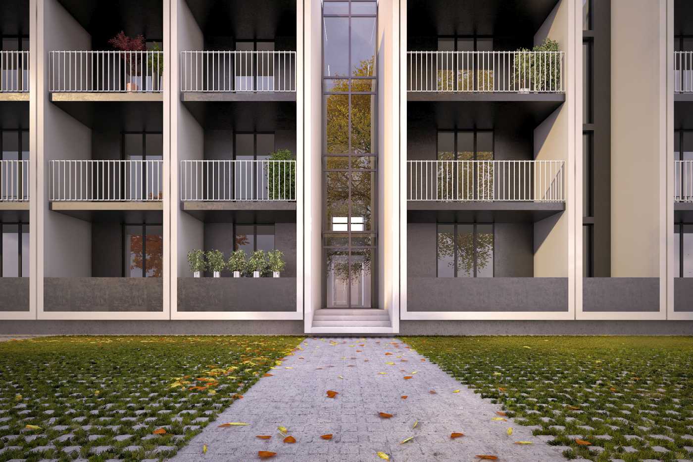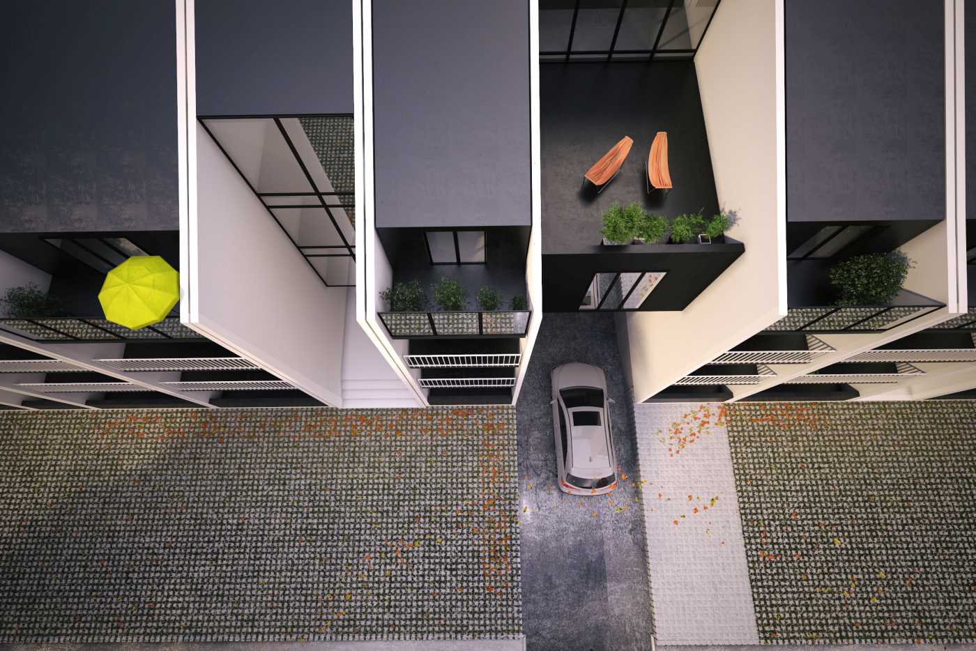 URBANISTIČKO REŠENJE | Lokacija objekta je upravna na pravac puteva koji povezuju dva načina dolaska iz centralne zone Beograda, sa jugozapadne strane vozom, a sa severoistočne automobilom ili javnim prevozom, autoputem i Batajničkim drumom. Na samoj parceli su jasno vidljive pešačke staze koje je presecaju povezujući dve ''polovine'' naselja - železnicku stanicu i Zemun polje sa jedne strane, sa drumskim prilazom i naseljom Kamendin sa druge. Propustljivost novog objekta ima za cilj da podrži kretanje pešaka izmedu ove dve celine, te su zato elementi koji čine njegovu strukturu postavljeni paralelno sa ovim pravcem. Na ovaj način sve jedinice su upravne na osnovnu pristupnu Ulicu Akrobate Aleksića, a njihovim razmicanjem se ostvaruju poprečne veze sa zadnjim dvorištem - u kojem je smešten parking na otvorenom, sa leve i desne strane, i centralno podužno dečije igralište u samoj sredini bloka, ušuškano objektom, visokim zelenilom i baštama susednih parcela. Sa prednje strane objekta je otvoreno pristupno dvorište jedinicama, koje služi kao vazdušna pauza između stanova, i ulice i uličnog parkinga. Kako je nagib Ulice Akrobate Aleksica od jednog do drugog kraja parcele 2.7m, pristupno dvorište i sami objekti su visinski pozicionirani kaskadno - u tri celine, odnosno lamele A, B i C, svaka sa svojom pripadajućom garažom. Kota prizemlja svake lamele je na najnižoj koti ulice na visini od 1.2m od terena - gde i dostiže maksimalnu dozvoljenu visinu venca 11.5m, dok je na najnižoj u visini sa terenom, što sa te starne omogućava nesmetani pristup objektu licima sa posebnim potrebama. Svaka lamela ima (1) dva ulaza, levi na višoj koti sa stepenišnim pristupom, i desni, na koti terena sa minimalnom rampom; (2) pešački prolaz ka zadnjem dvorištu u prizemlju; (3) pristup garaži sa Ulice Akrobate Aleksića. Između lamela su kolski pristupi otvorenom parkingu iza objekata, koji su pozicionirani tako da se nastavljaju na dve postojece, sada slepe ulice, iz pravca Ulice Tomice Popovica.