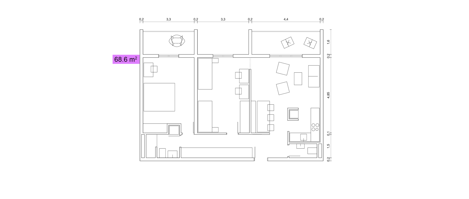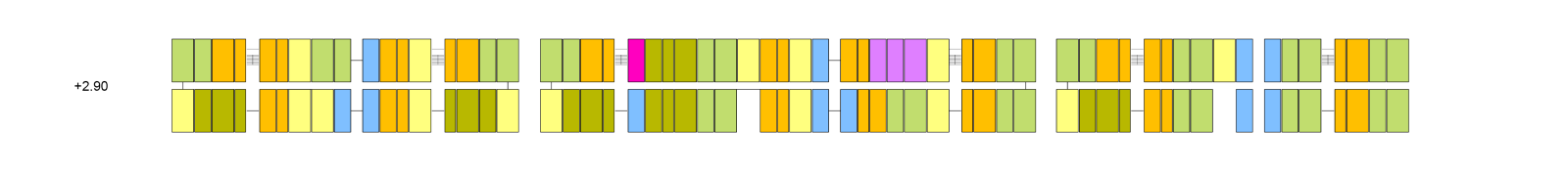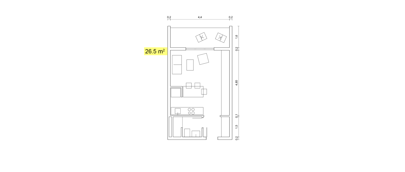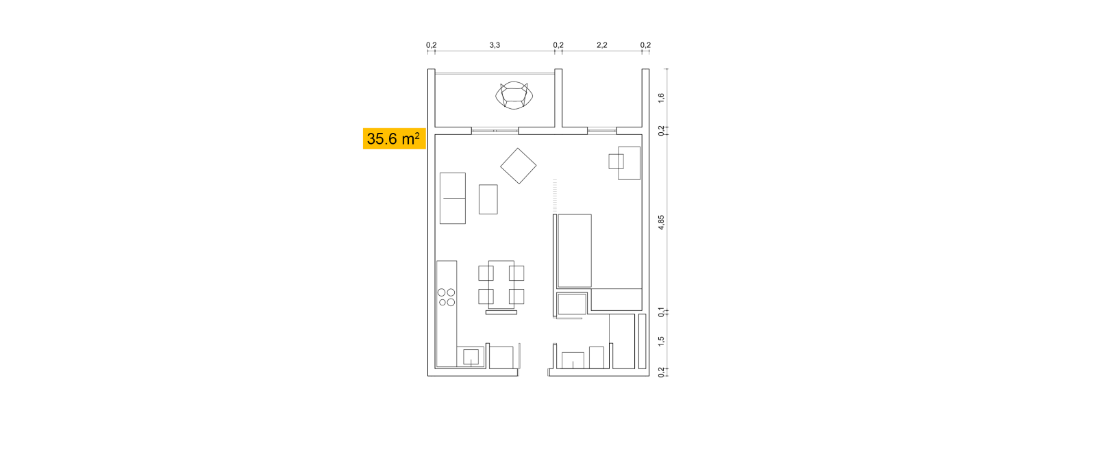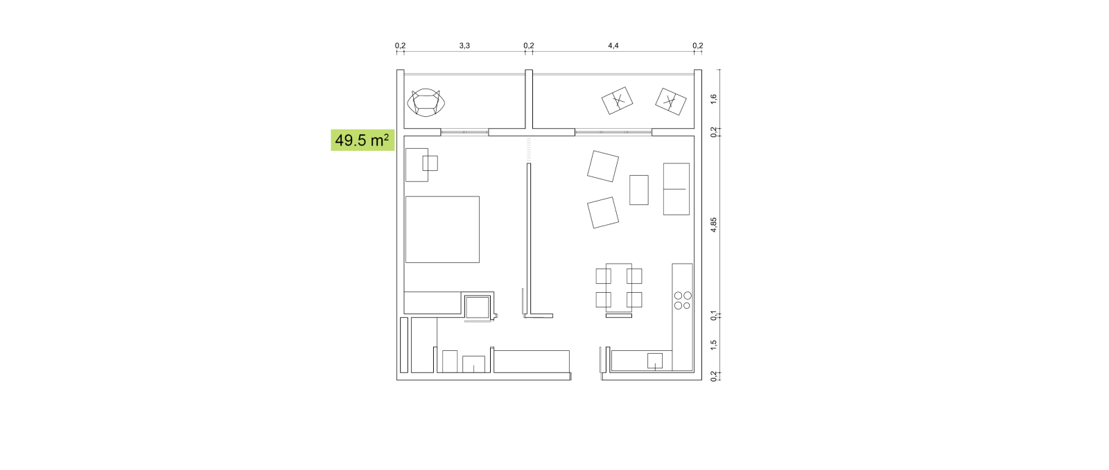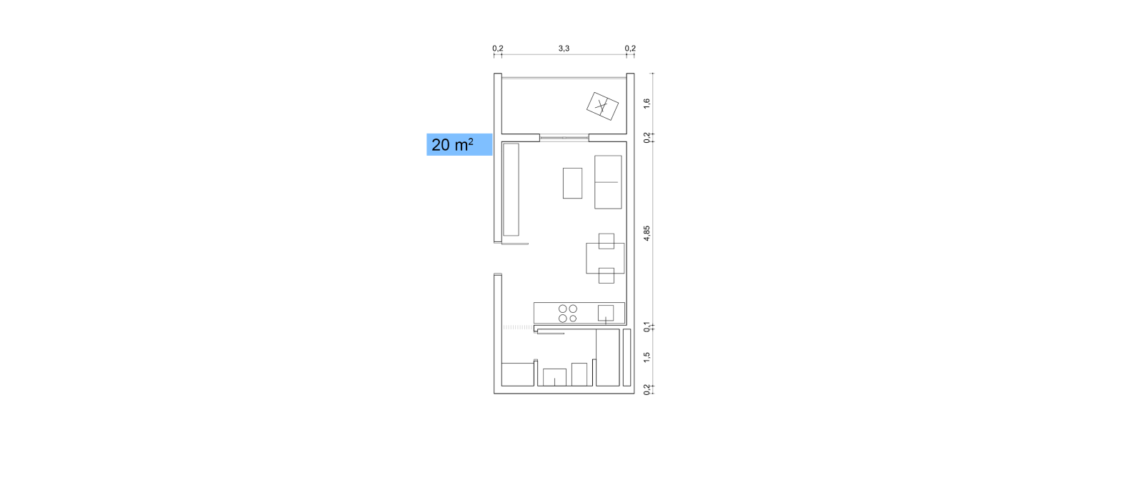 ORGANIZACIJA STAMBENIH JEDINICA | Svaka lamela podeljena je centralnim pristupnim hodnikom na dva niza stanova, tako da su uz hodnik u dubini objekta grupisane servisne prostorije, kupatila, toaleti i ulazni prostori, dok su dnevni prostori, prostori za obedovanje i spavanje orijentisani ka glavnim fasadama dubine do 4.85m, prirodno osvetljeni i provetreni. Osam tipova stanova (garsonjere, jednosobni, jednoiposobni, dvosobni, dvoiposobni, trosobni, troiposobni i četvoroiposobni) su po dužini organizovani na tri osnovna tipska rastera - 3.3m za minimalne dnevne sobe, spavaće sobe i garsonjere, 4.4m za dnevne sobe u stanovima sa više kvadrata, i 2.2m za takozvane „polu-sobe“ pripojene osnovnom prostoru stana. Na taj nacin stanovi svake lamele dobijeni su podelom na ova tri tipska rastera, ritmično, a prema potrebi specifičnih stanova (4.4 - 3.3 - 4.4 - 2.2 - 3.3 - 2.2 - ... itd.). Na isti način je rešena podzemna garaža, smenjivanjem tipskih rastera (7.7m su tri parking mesta, 5.5m su dva, a 9.9 su četiri parking mesta). Razmicanjem stambenih jedinica dobijeni su prolazi kroz zgradu, i ulazi u prizemlju, a na spratovima zajednički prostori za stanare - za ostavljanje bicikala i zajedničke staklene bašte. Ulazi u garaže su rešeni „umetanjem“ jednog ili dva stana po visini na mestu pristupne rampe, dok je prizemlje i potkrovlje uvek čisto, te je na potkrovlju velika zajednička terasa - sušionica i prostor za okupljanja stanara. Svaki stan ima mogućnost proširenja u vidu terase (a radi ekonomičnosti rešenja, moguće je graditi i potpuno bez terasa), sa varijacijama u tipu terase po spratovima. U prizemlju terase su ograđene punim zidom radi intimnosti, na spratovima metalnom ogradom, dok je u potkrovlju mala krovna lođa - izdvojena staklenom ogradom i sa otvorenim pogledom na nebo.