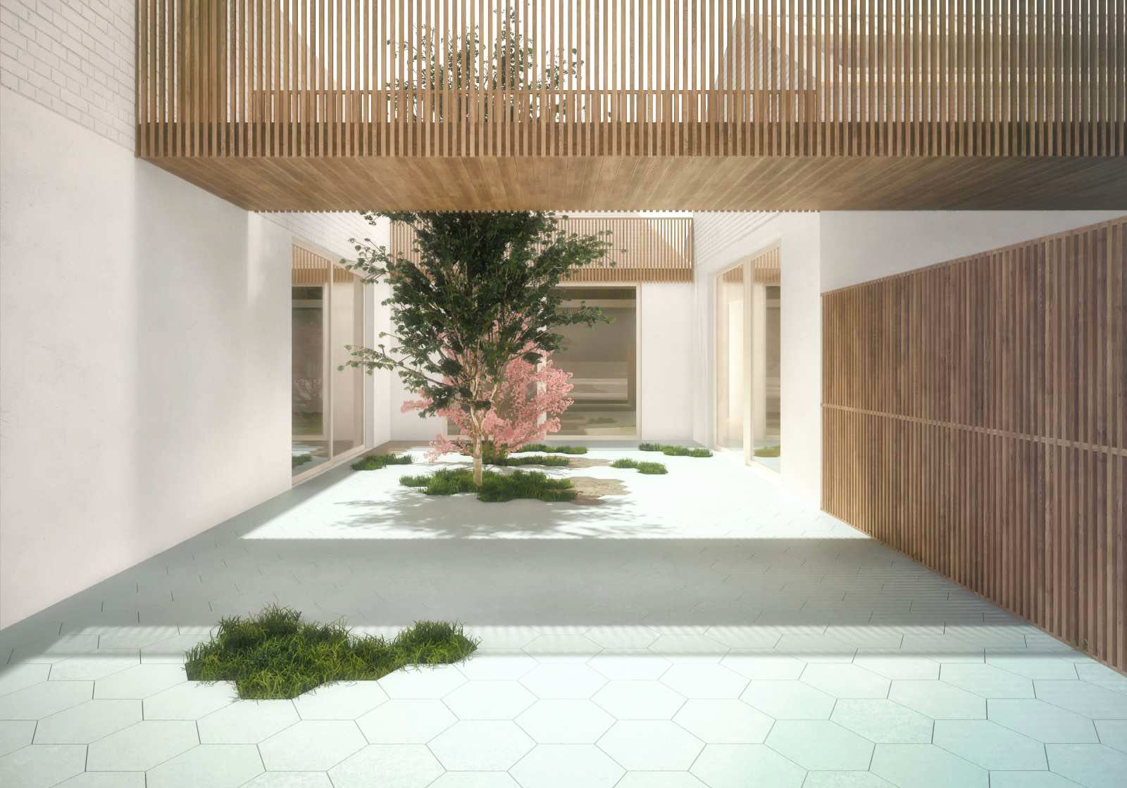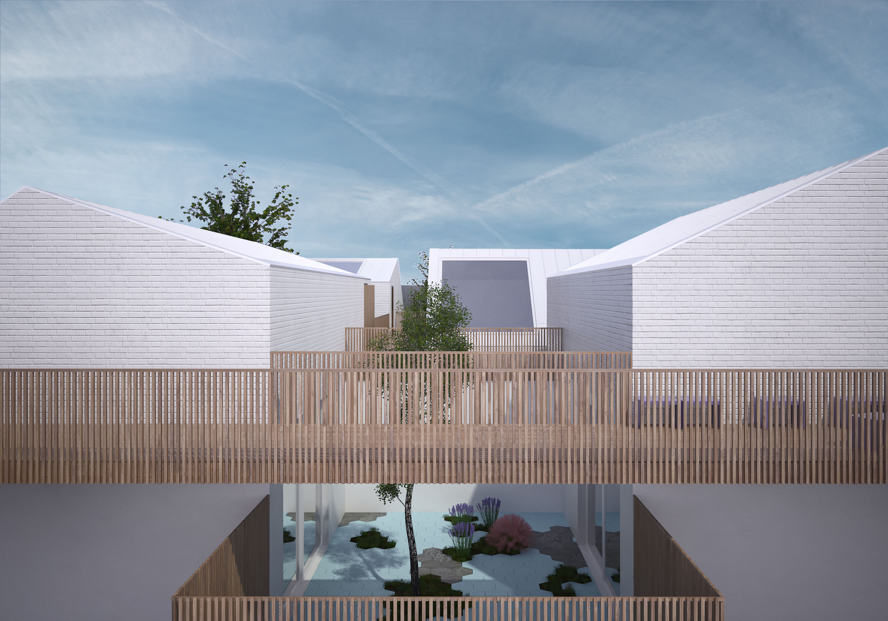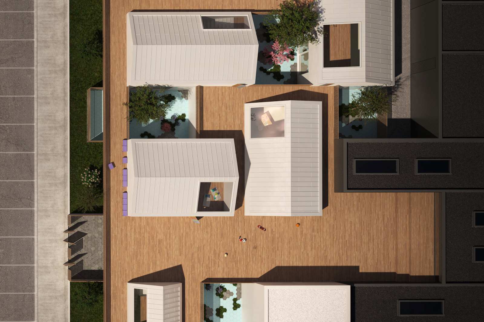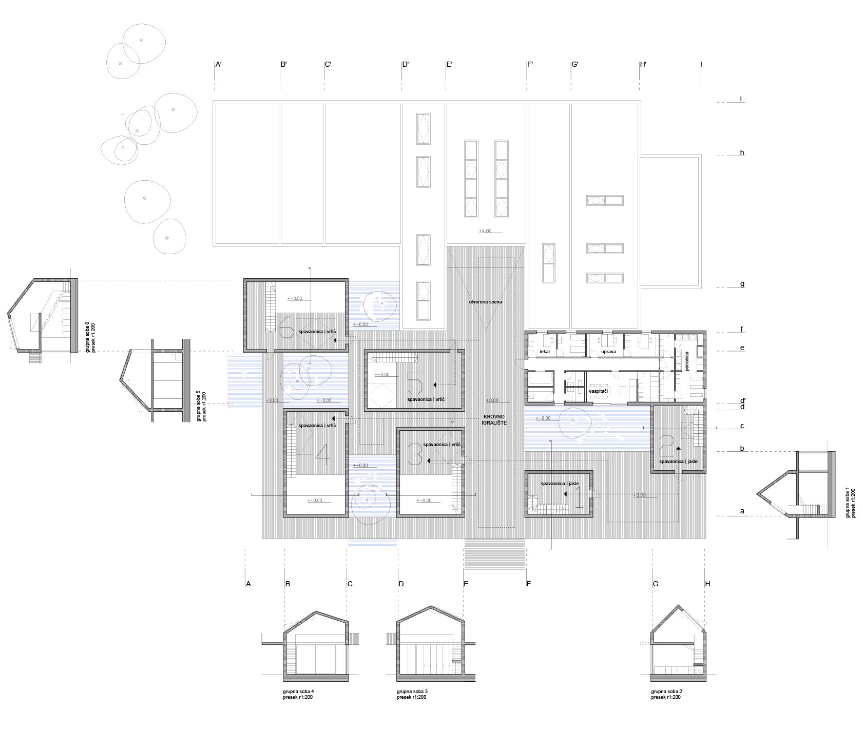 Dvojni objekat - kuhinja i obdanište - osmišljen je tako da i jedan i drugi deo proizilaze iz logike kretanja - u kuhinji hrane, a u obdaništu dece. Pripremi hrane je potreban čist i jasno organizovan sistem prostorija, od prihvatnog magacina, do ekspedicije gotovih obroka, dok je, detetu potreban prostor koji pruža mogućnosti - umesto jednoznačnog kretanja prostor obdaništa uvek otvara nove putanje, a umesto kontinualnog boravka u istoj učionici, uvek nudi mogućnost promene ambijenta, radi stalnog stimulisanja pažnje i održavanja koncentracije. Složenost prostora inicira razmišljanja i formiranje sopstvenih tumačenja i značenja, pa dete upoznajući i istražujući prostor oko sebe postepeno razvija stav prema okruženju i svetu. Iz ovih razloga zgrada obdaništa teži da postane sastavni deo procesa učenja. Šest grupnih soba - "kućica" - razmicanjem određuju zajednički prostor između - ulazni hol, komunikacije i bašte. One se šire iznutra ka spolja, čime dete postepeno „osvaja” prostor napredujući od sopstvene učionice ka velikom zajedničkom igralištu na krovu. Odizanjem igrališta od tla na krov zgrade deci se pruža novi, samo njima namenjen prirodni ambijent u nivou krošnji drveća, zaštićen od saobraćaja i drugih smetnji iz okoline i sa pogledom na okruženje odozgo, umesto odozdo, što je prirodna pozicija deteta u svetu odraslih. Krovno igralište miri potrebu roditelja za sigurnošću deteta, sa potrebom deteta da istražuje i otkriva sopstveno okruženje. Sa šireg aspekta, karakteristična arhitektura obdaništa kao „grupacije kućica na krovnom igralištu”, doprinosi fomiranju identiteta naselja koje tek nastaje na trećem kraju Beograda, a time i osećaju prepoznatljivosti mesta kod deteta, i formiranju asocijativnih veza sa prostorom u kojem svakodnevno boravi.