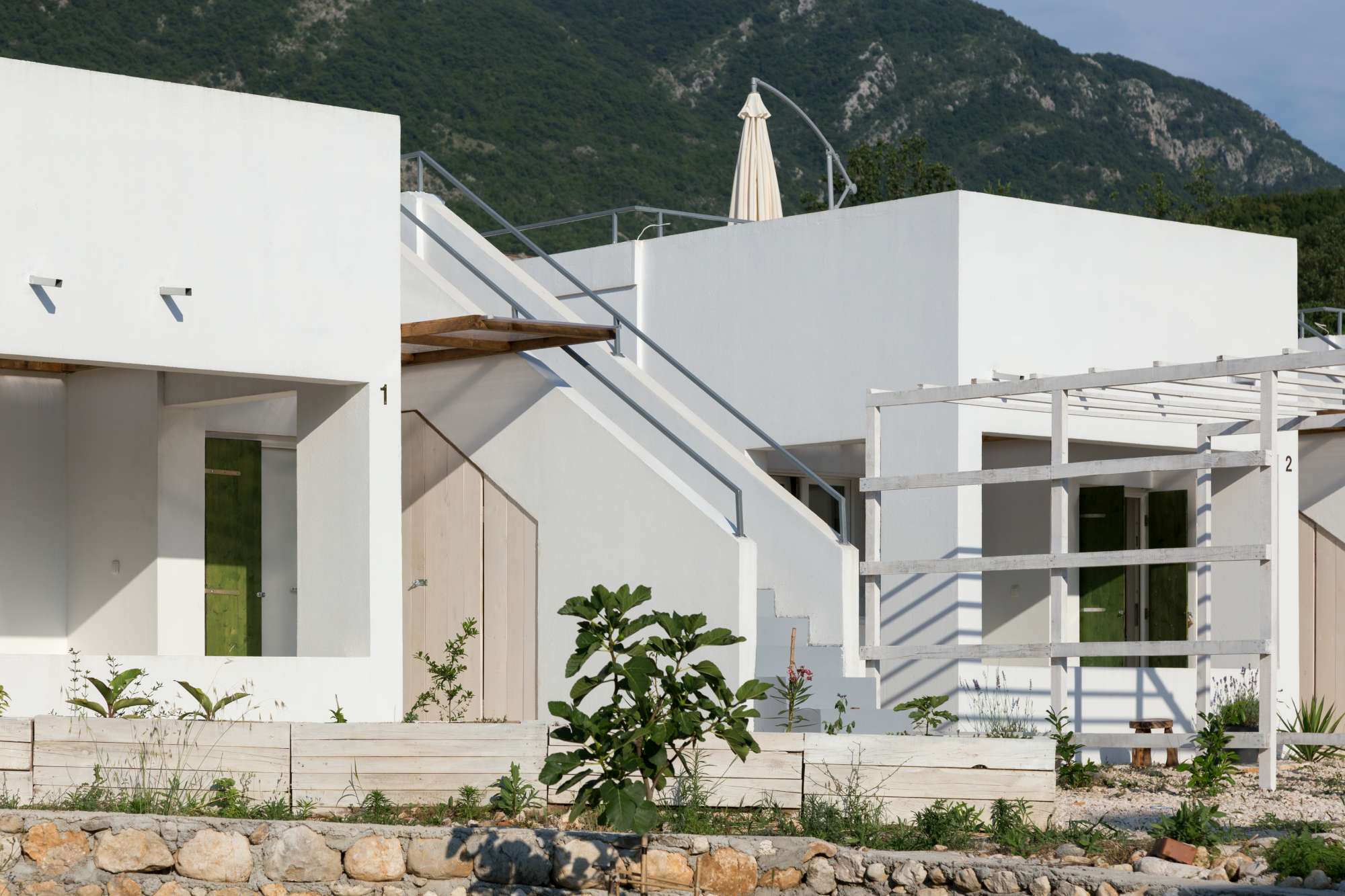 Four summer houses are set in Montenegro mountains, just a few kilometers away from the Adriatic sea. The project explores the potentials of open habitable spaces in relation to the common notion that only enclosed areas are considered as spaces to live in, occupy or own. Responding to strict building regulations, we decided to turn the building inside-out. Instead of having many closed rooms and one open terrace, we designed one enclosed space and several open and semi open areas, in this way blurring the boundary between habitable space and its natural surroundings, and directly engaging the architecture with its environment. The ratio of open to enclosed spaces achieved is 3:1.