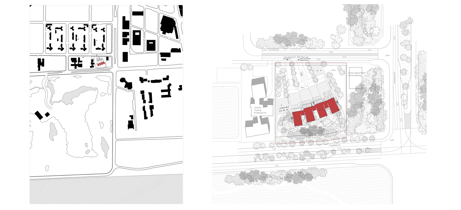 The new Library of Songdo International City will be located within a highly developed, futuristic urban context, along the multiplicity of residential high-rises and university buildings on one side and overlooking the large green areas of the Jack Nicklaus Golf Club and the Yellow Sea of North Pacific Ocean on the other. The impressive history of Songdo-dong and the ambitions plans for future development of the region asks for an architectural landmark that will significantly contribute to the identity of Songdo and symbolically stand out within the rapidly transforming silhouette of Incheon.