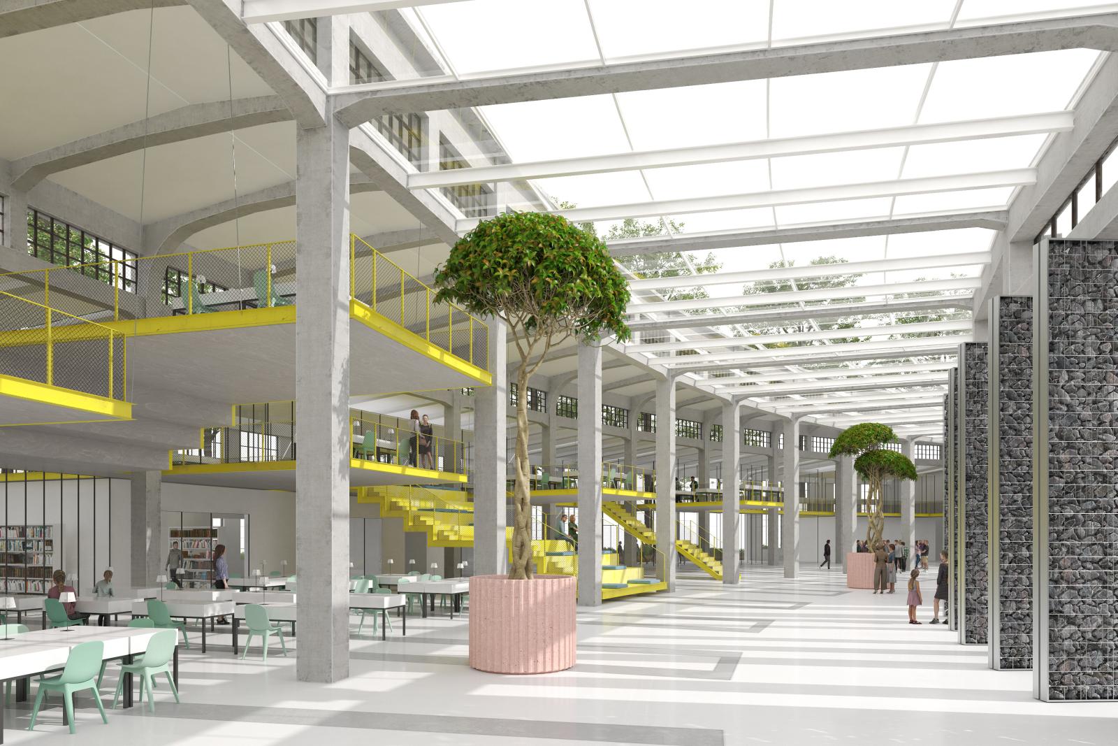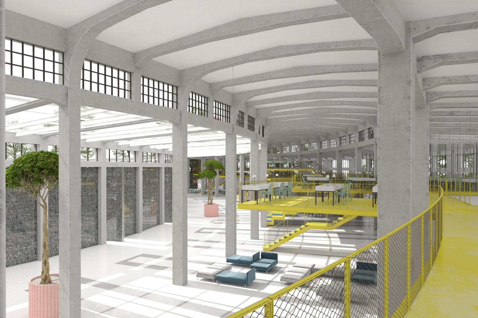 Objekat Ložionice je rekonstruisan tako da je unutrašnji prostor potpuno otvoren i protočan, bez poprečnih pregrada, tako da se struktura zgrade stalno sagledava u svoj svojoj veličanstvenosti. Prostor je programski zoniran radijalno u fragmentima kružnih isečaka koji se nadovezuju jedan na drugi. Jedini novi element prostora je lučna galerija celom dužinom objekta, u velikom brodu sa severne strane, sa koje se radijalno prepuštaju radni prostori u vidu terasa koje levitiraju u vazdušnom prostoru Ložionice. Terase se tipološki razlikuju među sobom, tako da su neke u nivou galerije, neke spuštene u vidu tribina ka prizemlju, neke odignute ka galeriji u vidu malih neformalnih prostora za prezentacije… Međusobno su vizuelno i vazdušno povezane, i sve zajedno čine veliki otvoreni radni pejzaž. Sa zadnje strane galerije pružaju se intimniji prostori za rad i sastanke u vidu zastakljenih kancelarija, dok su u zoni prizemlja ispod pozicionirani servisni blokovi koji snabdevaju ceo prostor, u zavisnosti od namene u pojedinačnim isečcima, i trgovačka zona između. Trgovačka zona je direktno povezana sa jedne strane sa ulaznim holom haba, a sa druge sa saobraćajnicom SAO10, pa se može koristiti i nezavisno od ostatka prostora Ložionice. Velika multifunkcionalna hala je pozicionirana na krajnjem desnom delu Ložionice, dok je na krajnjem levom delu kafe-restoran sa baštom u zoni iza slobodnog dela konstrukcije na otvorenom, koji je posebno očuvan kao element arheološkog pejzaža.
