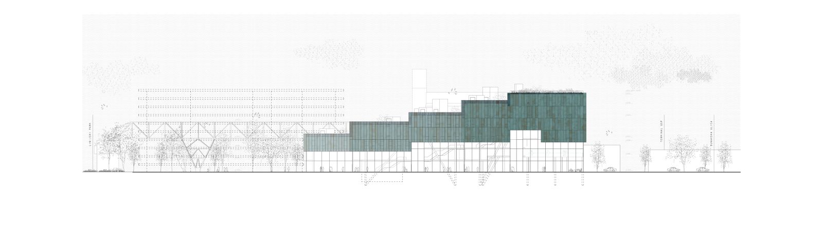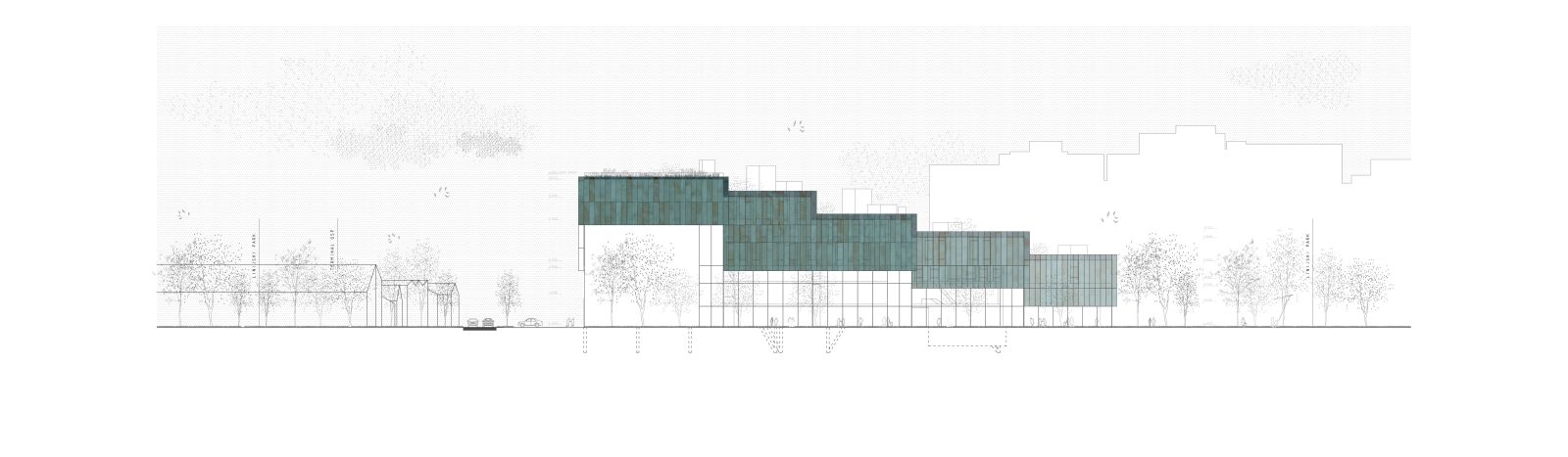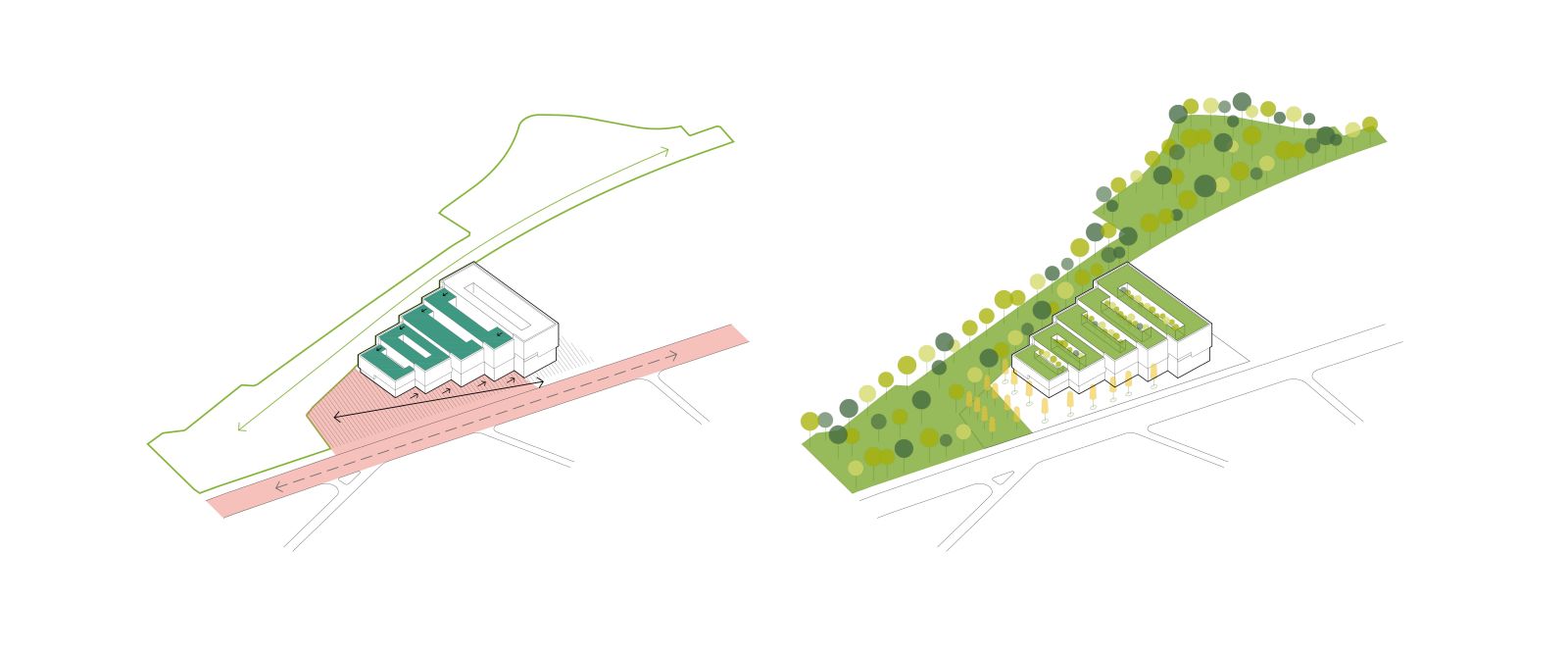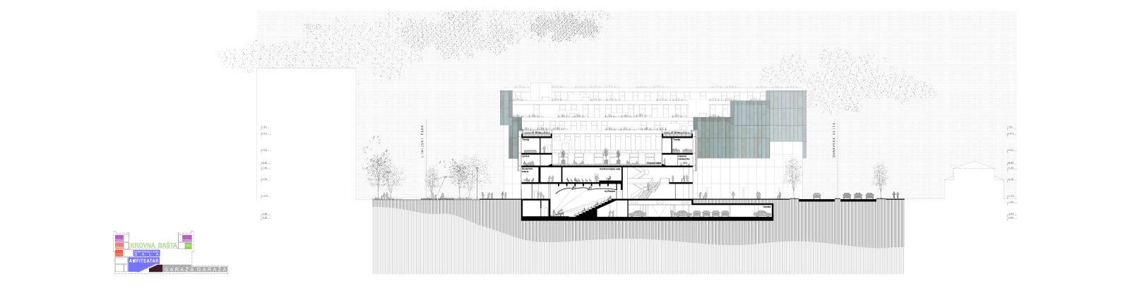 Lokacija buduće zgrade je deo poteza koji predstavlja živi dokument industrijske arheologije Beograda, a na rubu je velike prostorne transformacije u budućnosti izgradnjom Linijskog parka i stambeno-poslovnog kompleksa Marine Dorćol, kao i prenamenom termoelektrane „Snaga i svetlost‟, pa je u tom smislu ona ujedno i zametak novog, budućeg razvoja grada ka reci, kao i memento važne istorije grada koja u tom procesu ne sme da se izgubi. Zgrada Fakulteta se stepenasto otvara ka okruženju, kako u vertikalnom, tako i u horizontalnom planu, čime se u parteru posetioci postepeno uvode iz pravca Dunavske ulice i Linijskog parka na plato Fakulteta. Terasastim spuštanjem zgrade ka severozapadu, zeleni potez Linijskog parka vizuelno se uspinje na krovne bašte, gradeći novo zeleno brdo kao važan element budućeg identiteta Dunavske ulice i njenog neposrednog okruženja.